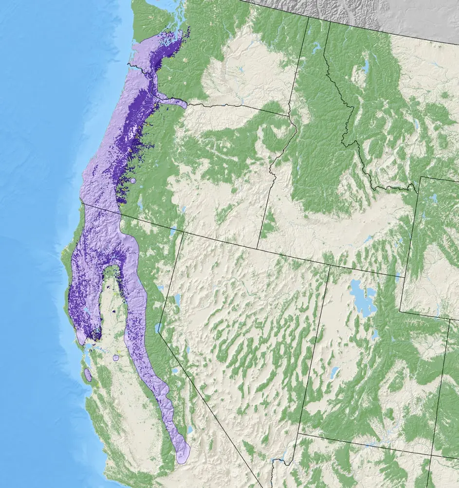 Map of Oregon Ash density from the National Individual Tree Species Atlas