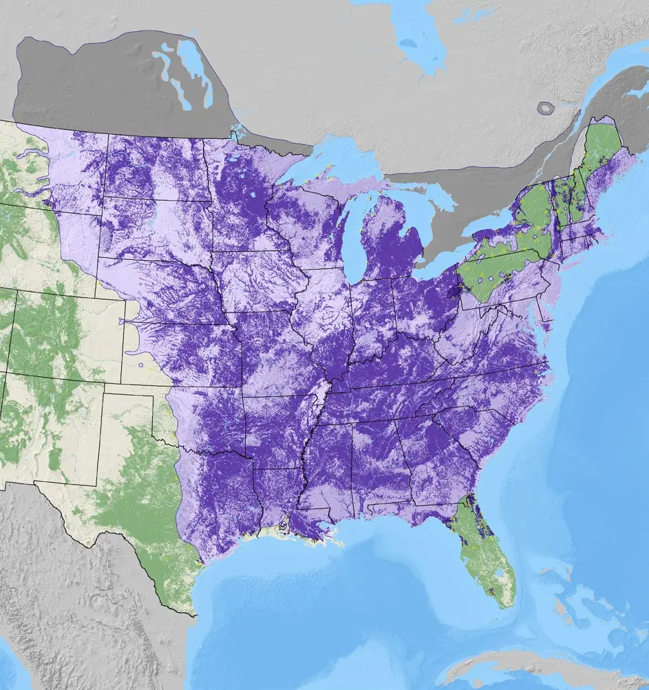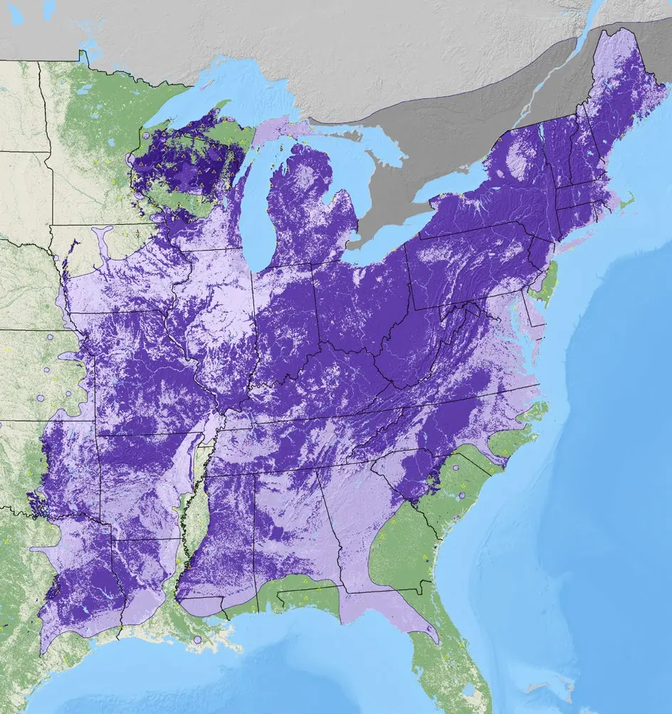 Map of Blue Ash density from the National Individual Tree Species Atlas