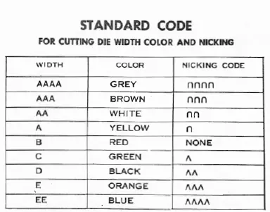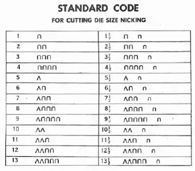 a production code using the number, shape, spacing, and size of notches to denote information
